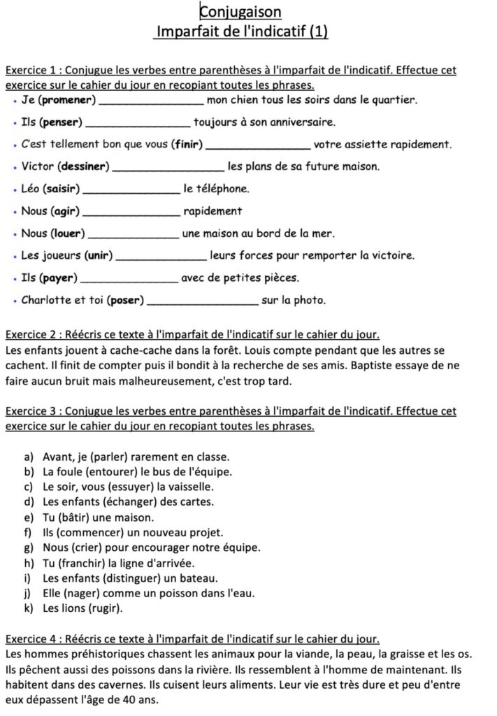 C8/C9 L’imparfait de l’indicatif : exercices Série 4 (M Bonelli)