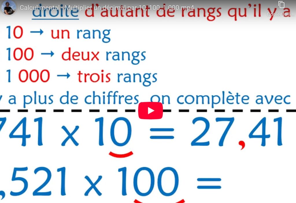 Calcul mental – Série 26 : Multiplier un ND par 10 – 100 – 1 000