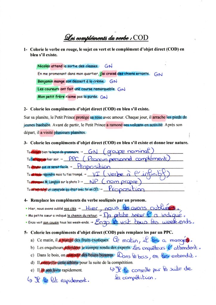 G10 Les compléments d’objet direct COD : correction des exercices Série 3 (M Bonelli) bonelliseb il y a 7 mois