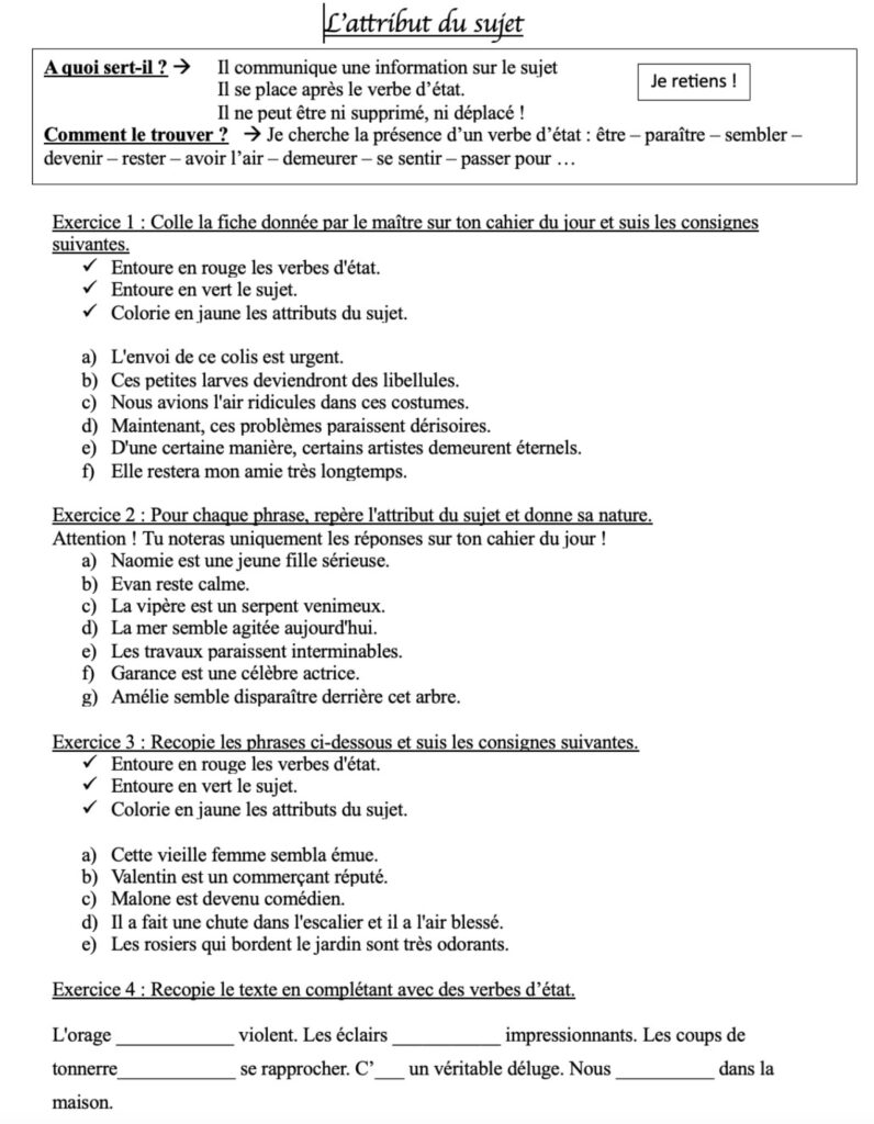 G11 Les attributs du sujet : exercices Série 1 + correction (M Bonelli)