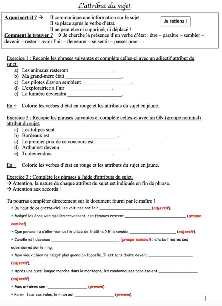 G11 Les attributs du sujet : exercices Série 2 (M Bonelli) + correction
