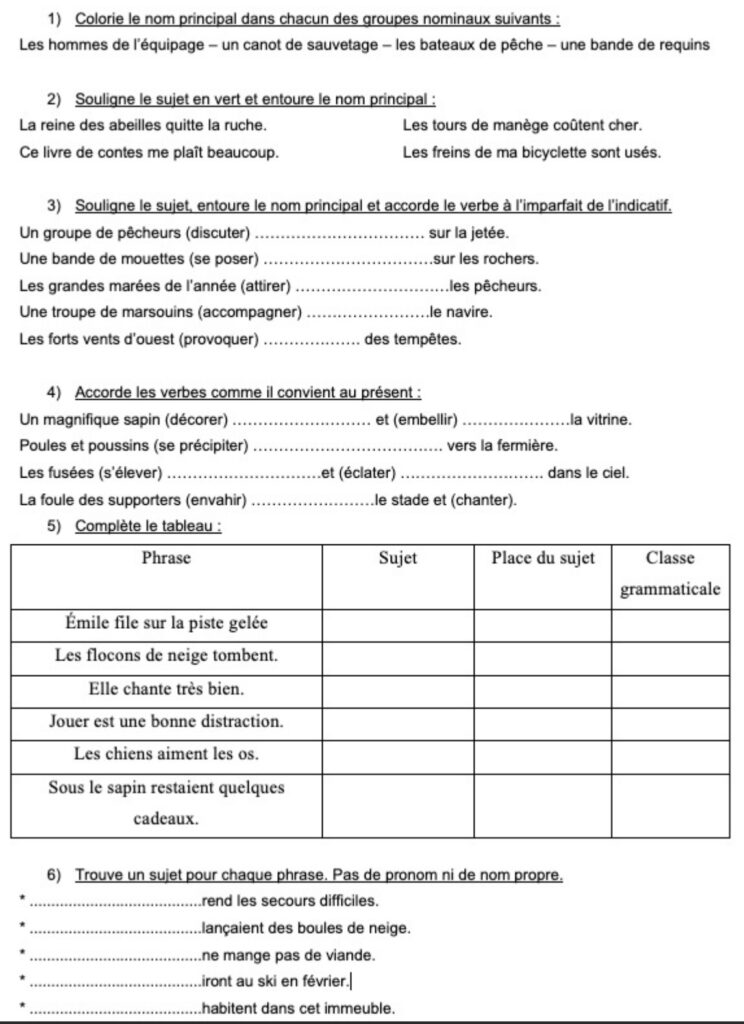 G8 L’accord Sujet/Verbe : exercices Série 1