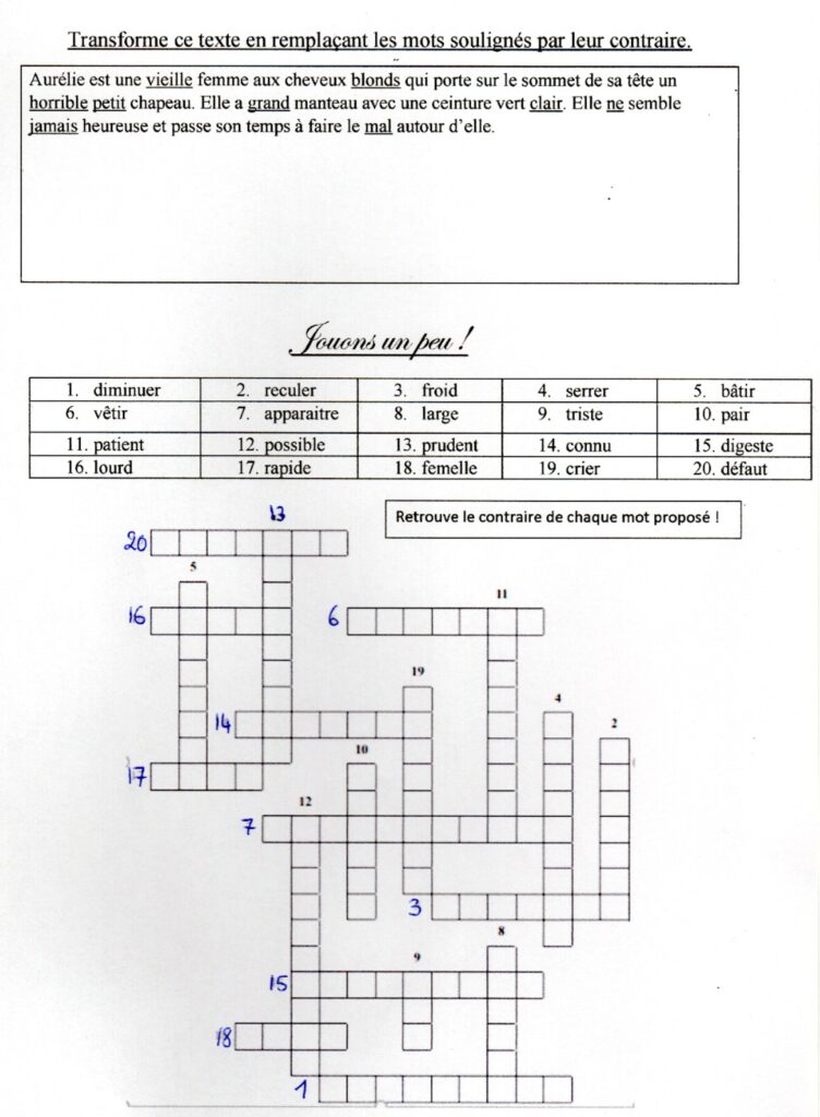 V10 Les antonymes : exercices Série 4 (M Bonelli) + correction